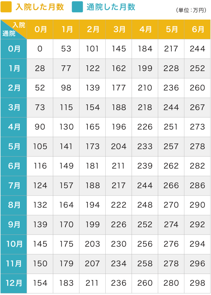 一方、「定率型」は、自賠責保険の基準をもとに、実通院日数の2倍または3倍の日数を基準として算出する方式で、長期通院になればなるほど有利になる計算方法とされています。各保険会社によって採用されている方式が異なるため、契約時にどちらの方式が適用されるかを確認することが重要です。また、通院日数が中断した場合の取り扱いや、整形外科・整骨院などの施設に対する通院の正当性も判断材料となります。