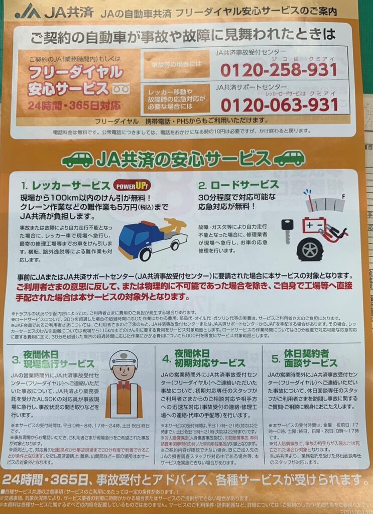 JAの自動車保険は故障車のレッカーをカバーしていますか?
