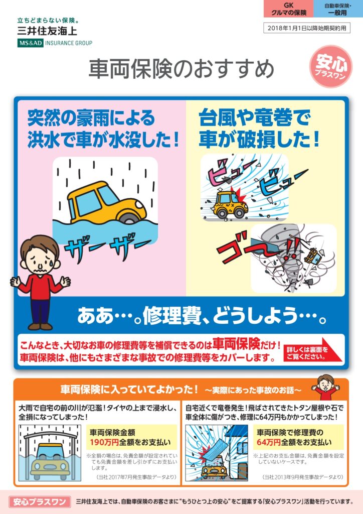 駐車中に洪水で浸水 車両保険+風水害・水損補償特約 特約加入時のみ可