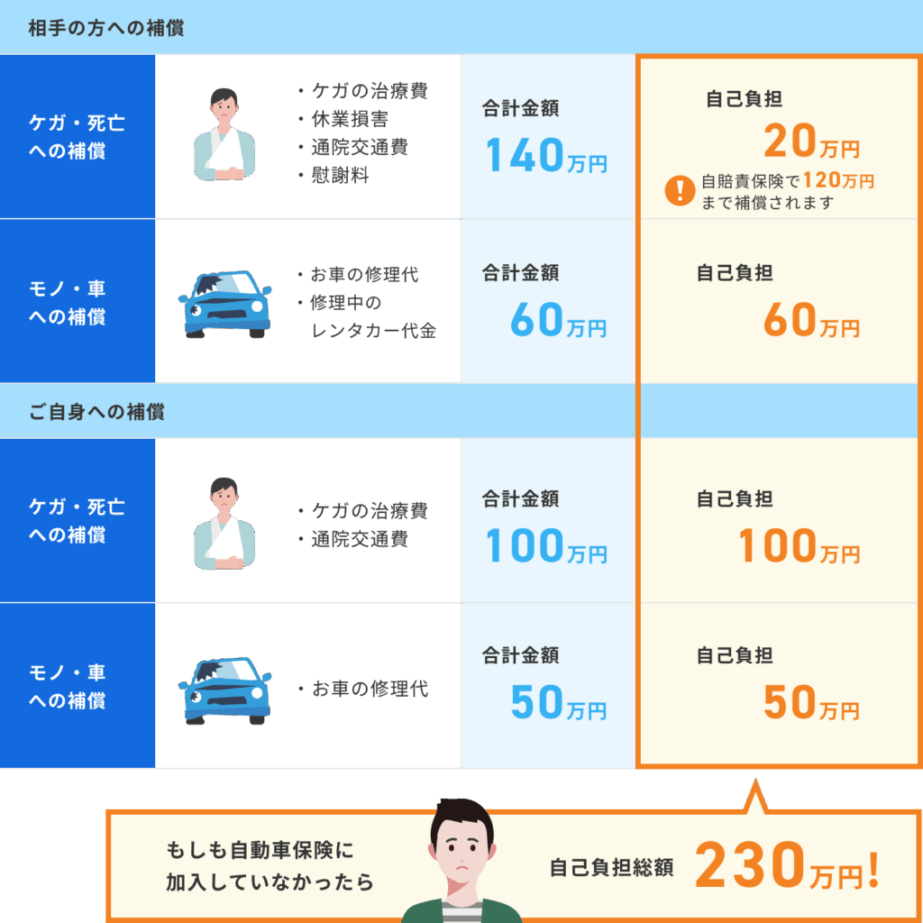 自賠責保険は法律で必ず加入が義務付けられている保険で、事故による他人の死傷に対して最低限の補償を行います。しかし、その補償額には上限があり、大きな事故の場合には補償が足りなくなることがあります。